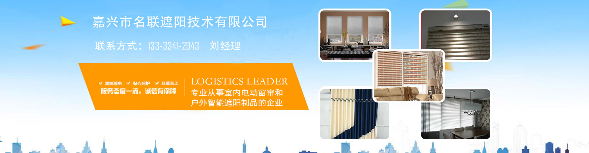 嘉兴市名联遮阳技术有限公司专业从事室内电动窗帘和户外智能遮阳制品的企业. 名联遮阳是一家集研发、生产、销售、服务于一体的专业窗饰制造企业,拥有多年的发展历史。公司自成立并进入国内的窗饰市场以来,秉承专业专注的精神,注重每一细节的精心打造,在室内窗饰以及遮阳窗帘系统智能化控制领域中有着丰富的设计制作和窗帘安装施工经验。以其智能、环保、实用、时尚的电动窗帘系列产品广泛应用于各大标志性建筑工程,并得到了用户的一致好评。