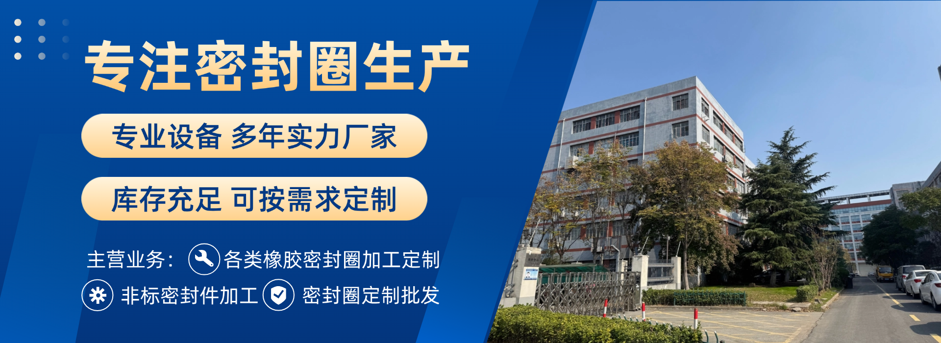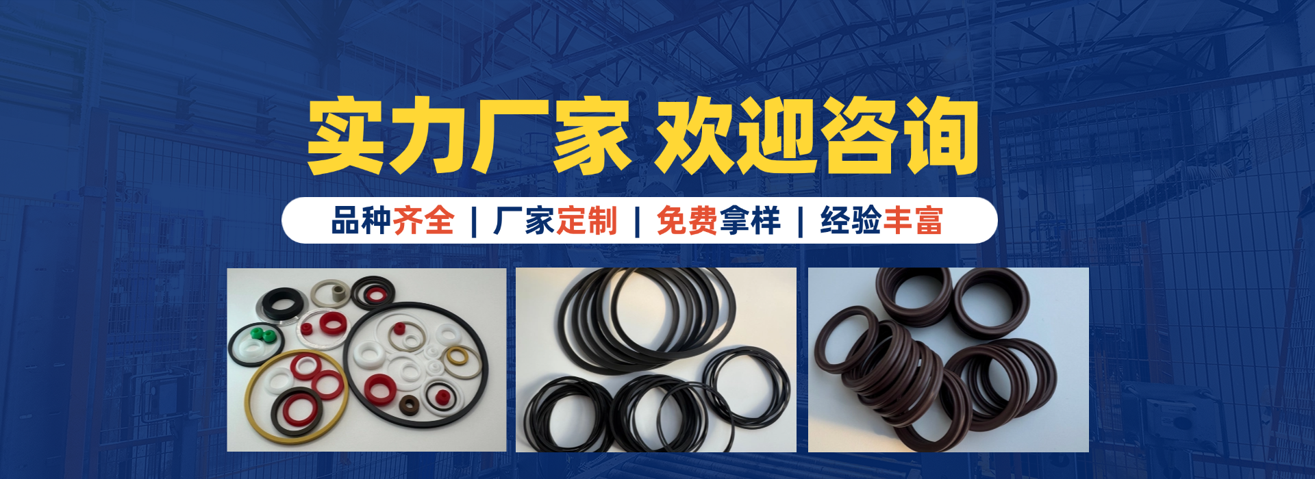 我们主要生产骨架油封、O型圈、星型圈、U型圈、Y型圈、橡胶