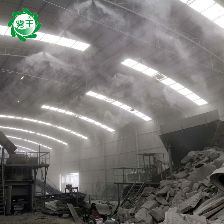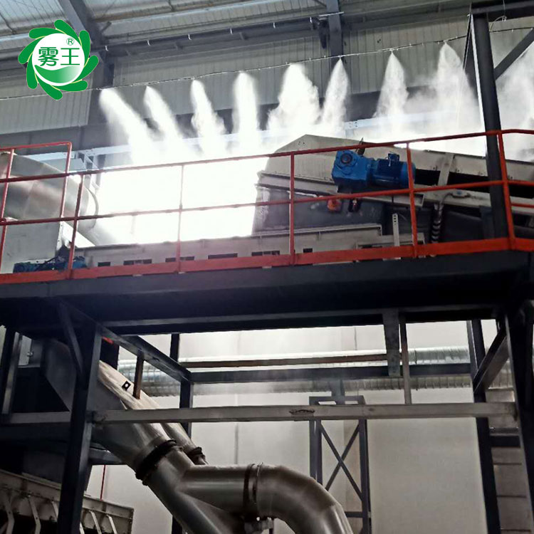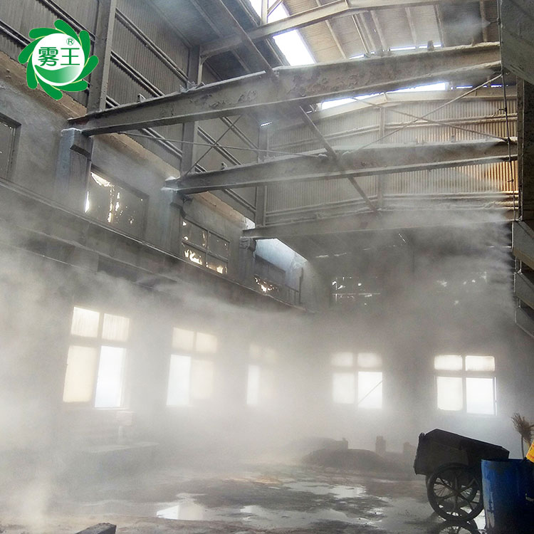 高压喷雾降尘系统原理是利用水对粉尘的附着性来进行除尘作业。产品结构简单,通过高压泵作用,将水分解成较小颗粒,并且与车间的粉尘进行碰撞,使水雾与粉尘颗粒迅速吸附、凝结变大,并在自身重力作用下沉降,从而达到降尘目的。当车间内作业引起的粉尘,引起人们身体不适时,使用雾王喷雾降尘设备来增加湿度,从而达到喷雾降尘,对cu进安quan生产、保障职工身体健康、维护生态环境起到***作用。
